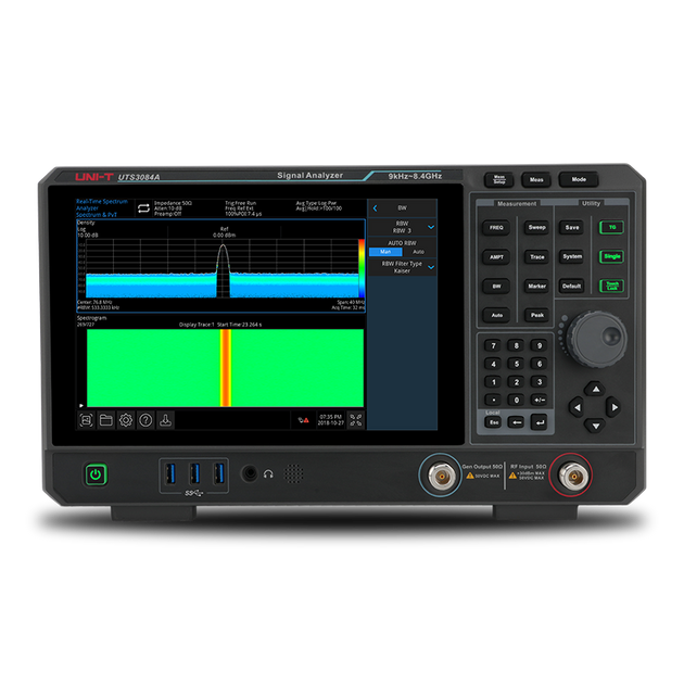 The Uni-Trend UTS3084A Performance-Series Signal Analyzer includes a tracking generator and is an affordable 8.4GHz signal analyzer for EMI pre-compliance testing and a variety of other applications.