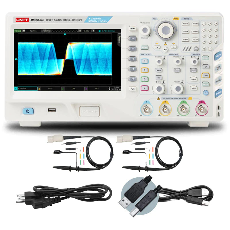 | Included Accessories | Power cord, USB2.0 printing cable, Passive probe 500MHz * 2(UT-P07) or 350MHz * 4 (UT-P08) |
