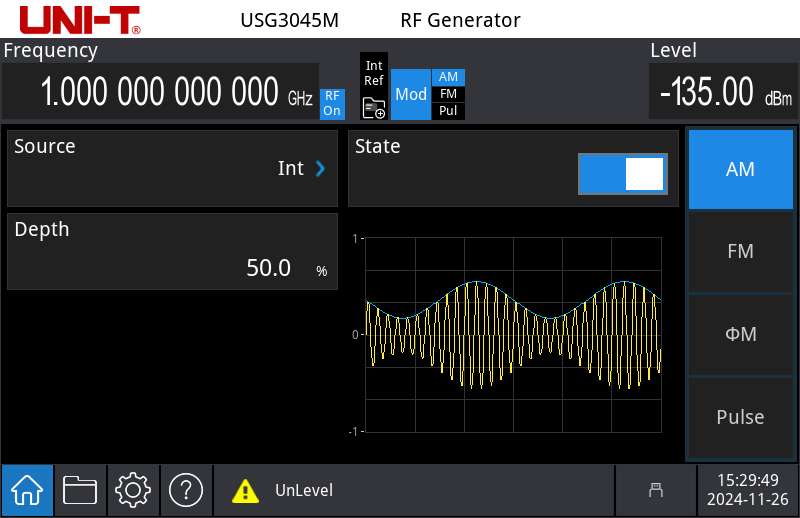 - LEVEL RANGE: -135 dBm - +25 dBm