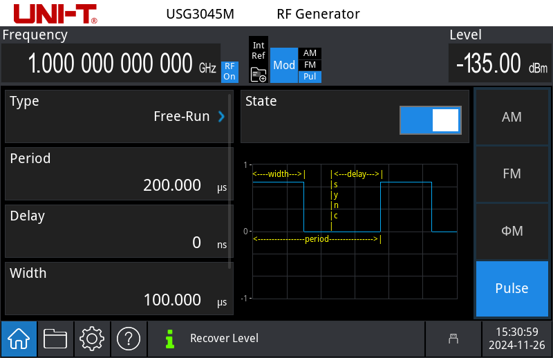 High-precision Pulse GeneratorFeatures a stable clock source, optional pulse modulation and a narrow pulse generator. It has a minimum pulse width of up to 20 ns and a resolution of 10 ns