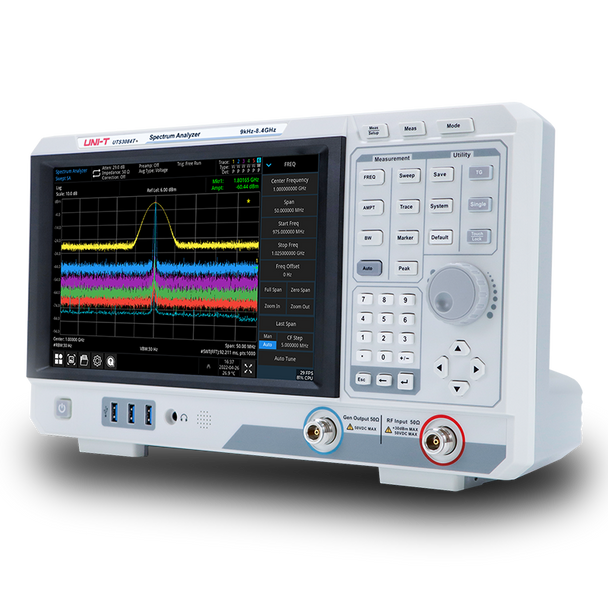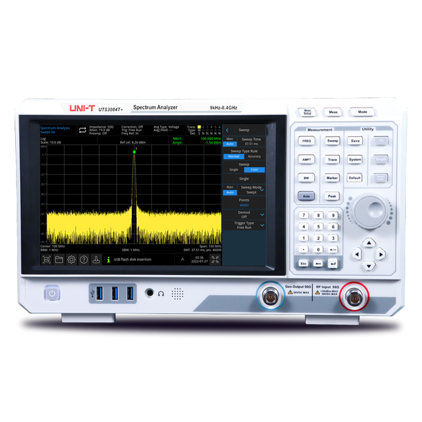 Der Spektrumanalysator der Uni-Trend UTS3084T+ Performance-Serie ist ein kostengünstiger 8,4-GHz-Signalanalysator für EMI-Vorkonformitätstests und eine Vielzahl anderer Anwendungen.