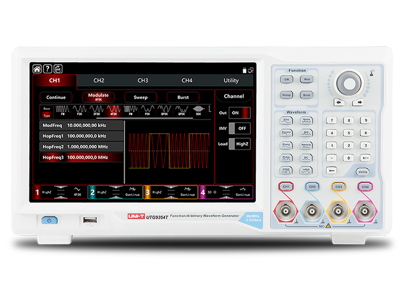Uni-T-Wellenformgeneratoren können die folgenden Modulationsarten erzeugen (je nach Modell): AM (Amplitudenmodulation), FM (Frequenzmodulation), PM (Phasenmodulation), ASK (Amplitudenumtastung), FSK (Frequenzumtastung), PSK (Phasenumtastung), BPSK (Binäre Phasenumtastung), QPSK (Quadratur-Phasenumtastung), OSK (Ein-Aus-Tastung), PWM (Pulsweitenmodulation), SUM (Summationsmodulation), QAM (Quadratur-Amplitudenmodulation).