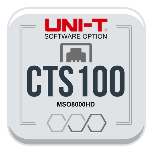 The MSO8000HD-CTS100 is a 100BASE-TX Ethernet Compliance Test Option for the MSO8000HD Series, designed to perform automated compliance testing of Ethernet physical layer parameters.